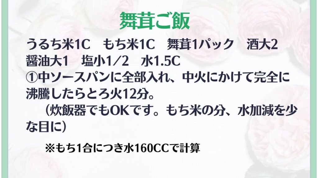 もち米の量は、レシピでは同量ですが、1:2~3でも良いです。