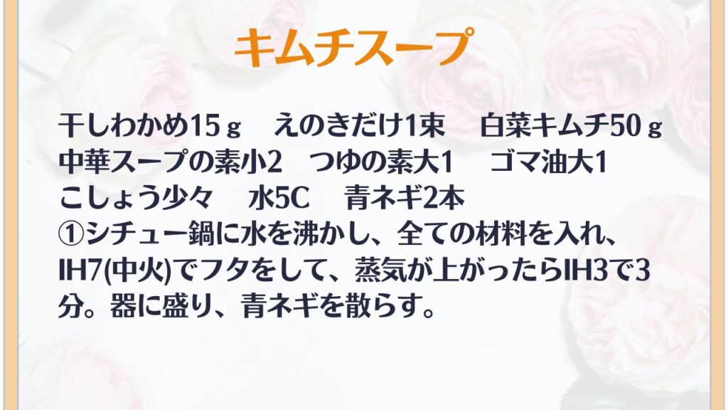 こちらも、キムチやえのきを切るのに、キッチンバサミを使ってしまえば、ほとんど包丁無しで出来るメニューです。