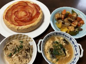 - 11月のノーミートクッキングより♪(厚揚げの酢豚風・舞茸ごはん・キムチスープ)