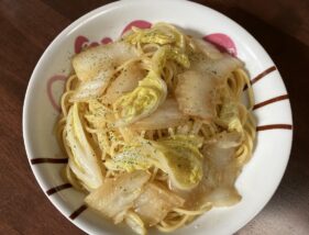 ちなみに、白菜パスタ、トマト味にしたり、めんつゆ味にしたり、と、その日の気分で色々変えて作っているようです。