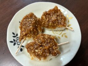 そして、ご飯が残っていたので、ご飯を潰してなんちゃって五平餅にしてみました。