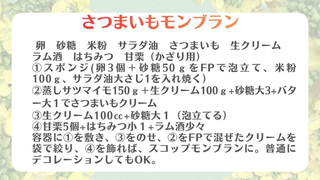 - 3月のノーミートクッキングより♪(さつまいものモンブラン)