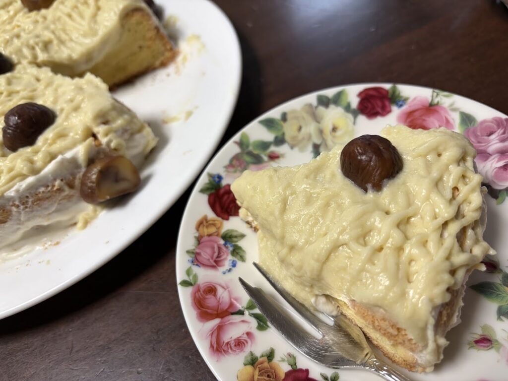 スポンジの出来次第では、容器に入れ込んで、スコップモンブラン(掘り出して分ける)にしても良いですし。