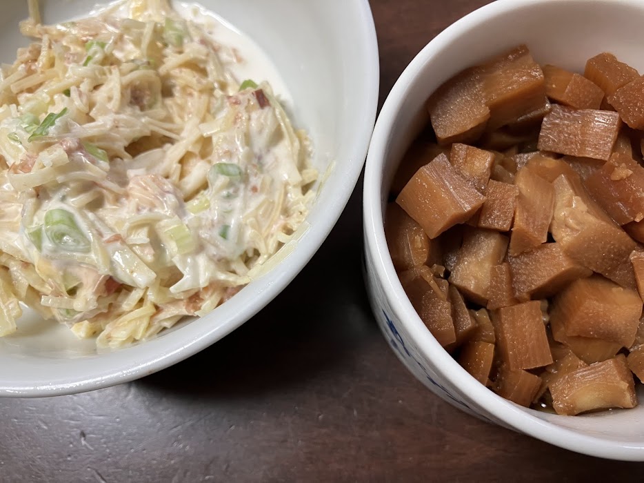 姫皮の梅マヨ和えを知ってからは、姫皮のために、皮ごと茹でるのが苦ではなくなりました。
