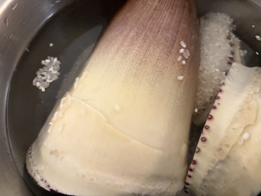 筍茹でる時、丸ごと茹でようと思ったら、結構な水の量になって。